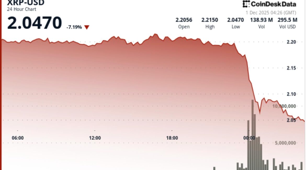 December 1, 2025 by Ceeyoung0 comments XRP Slides 7% as Technical Breakdown Opens Move to $1.80Despite expanding institutional infrastructure around XRP, short-term flows turned sharply bearish. China To Intensify Crackdown on Virtual Currencies, Including Stablecoins: Report Bitcoin’s Monthly MACD Flashes Red: Echoes of Past Bear Markets